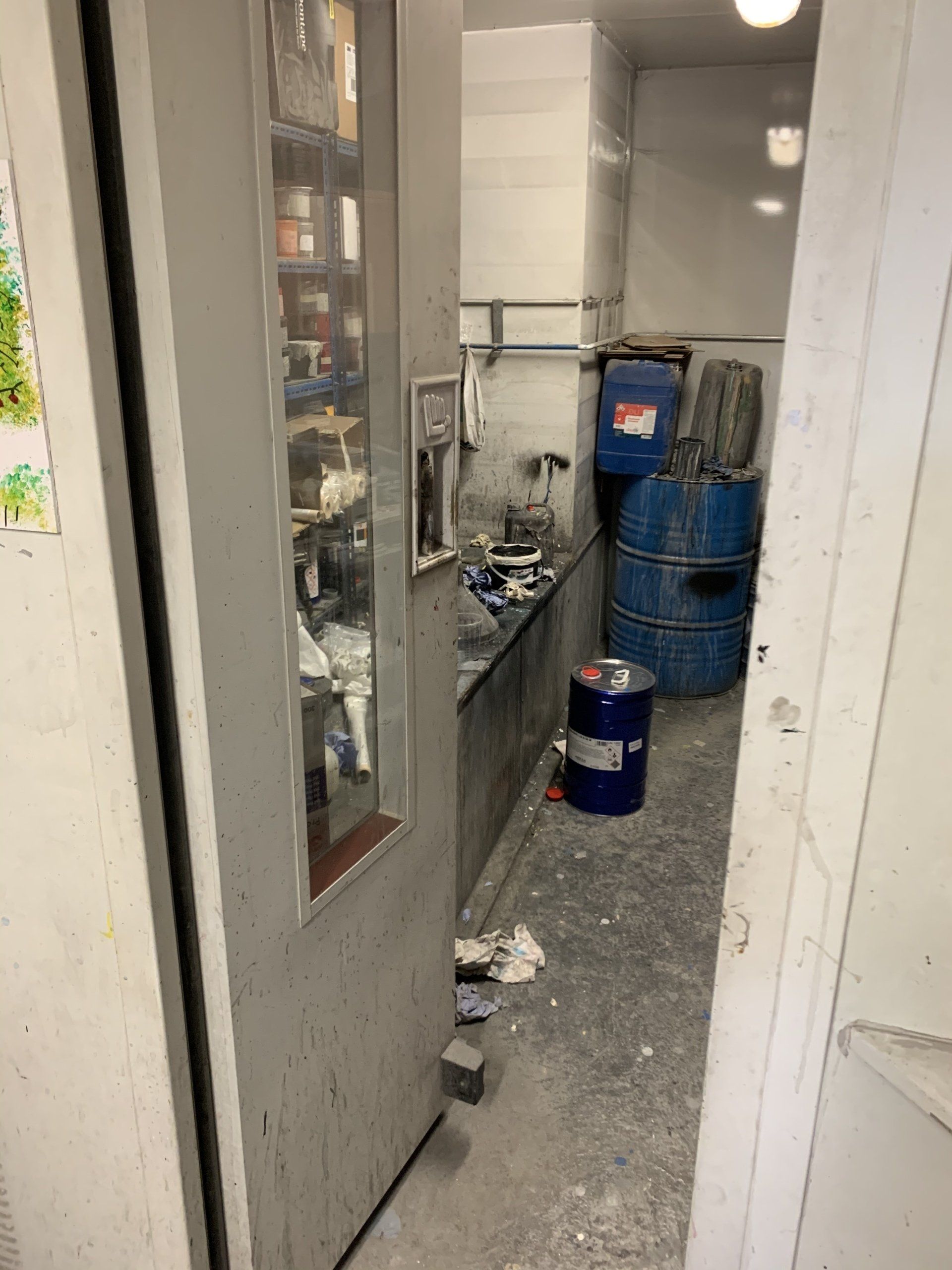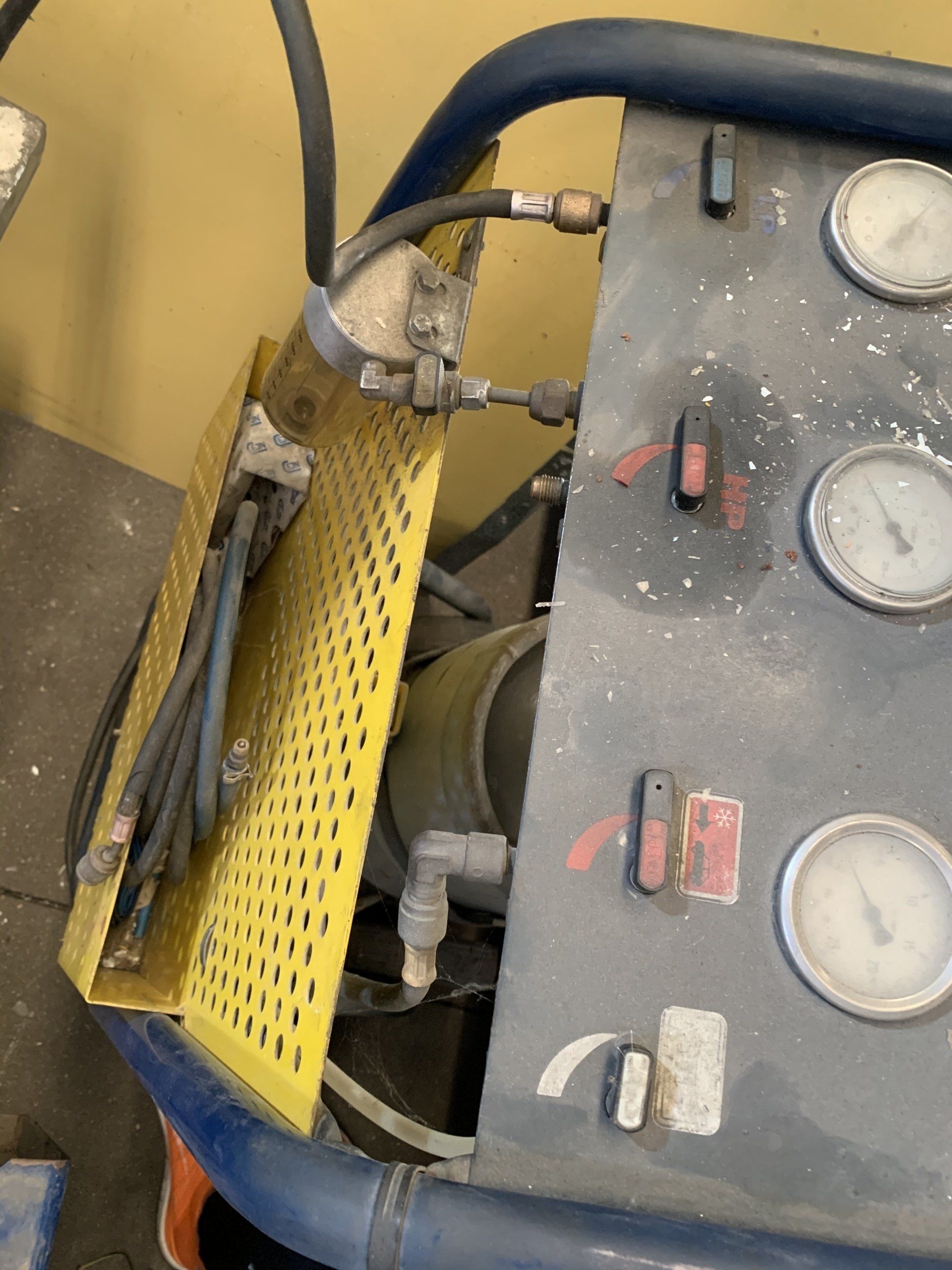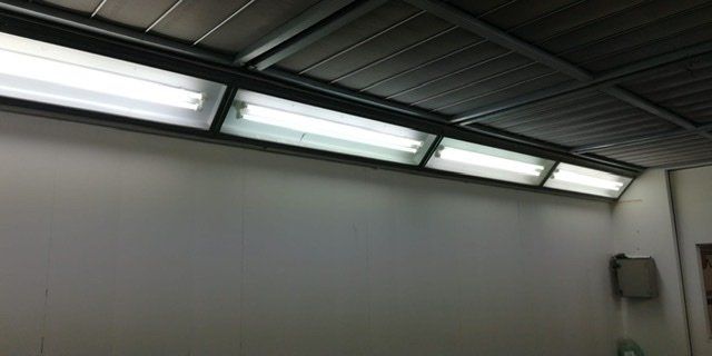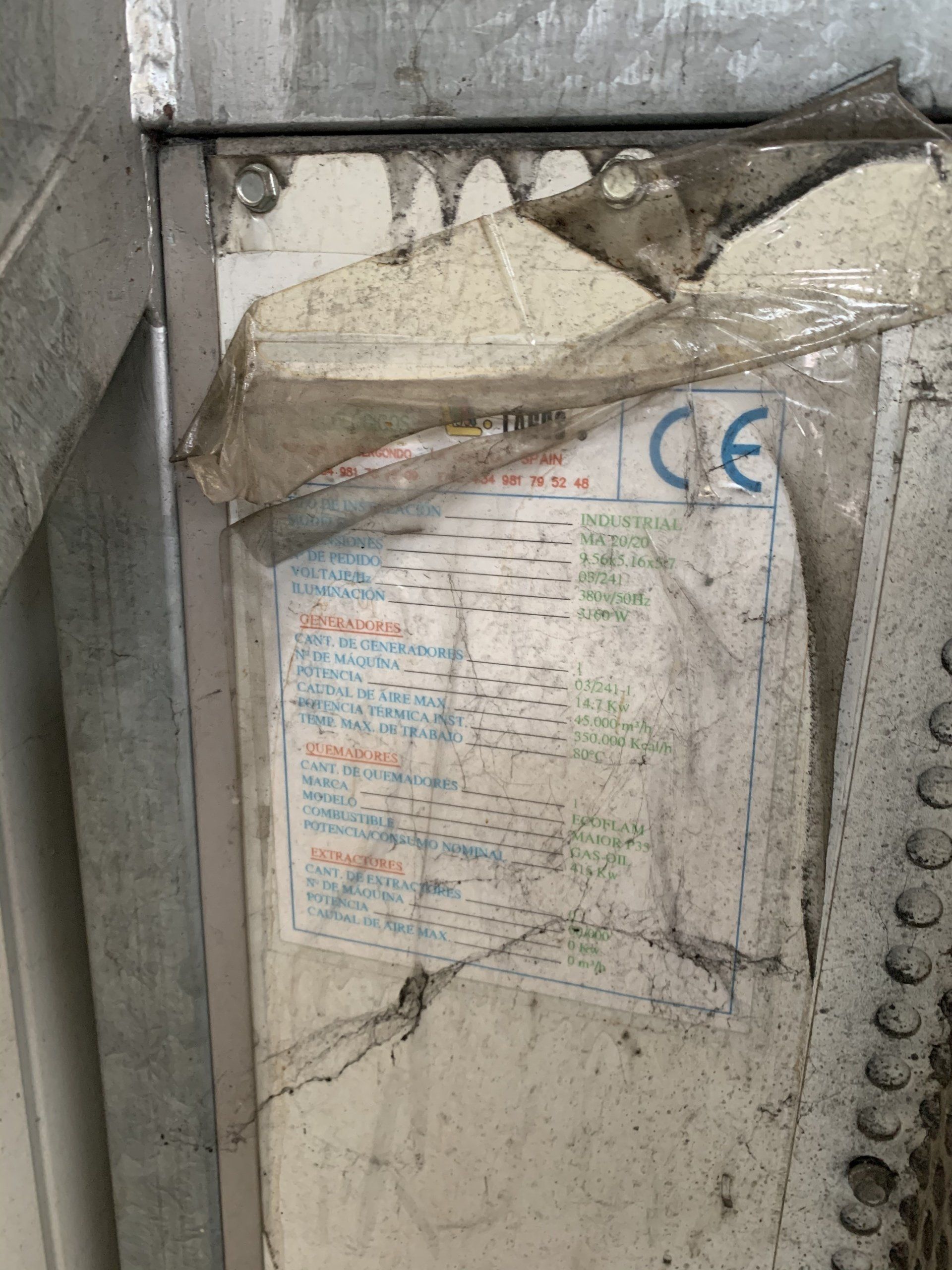Zona de preparación marca LAGOS modelo AP 6/3 de 6,40x3,80x2,80 altura de puerta, año 2001 motor impulsión 4kw con basamento metálico empotrado.
