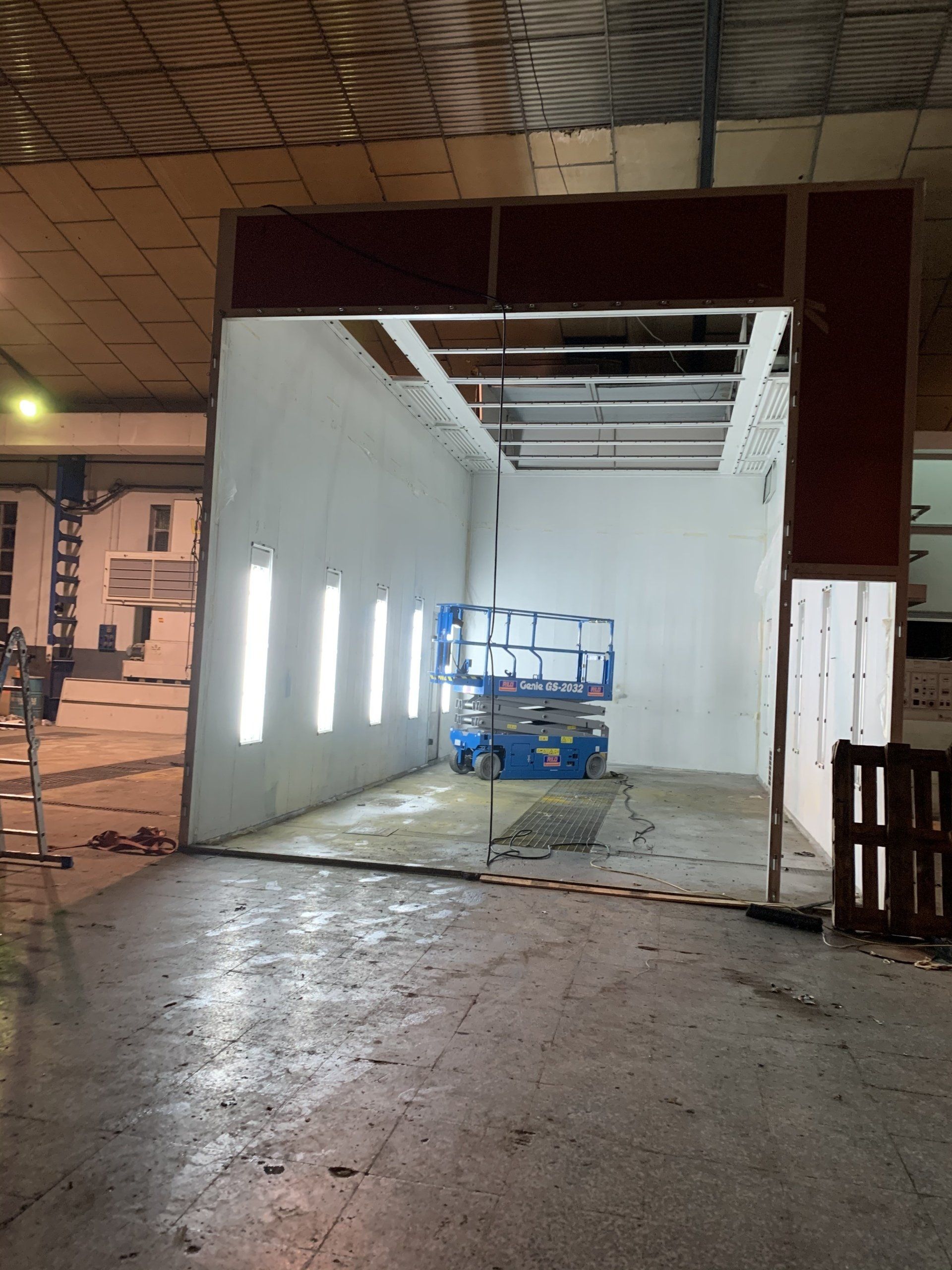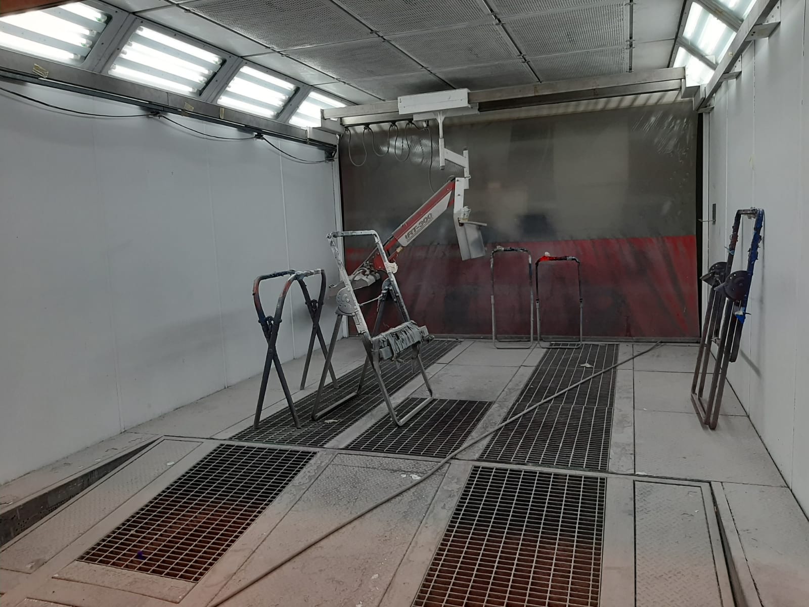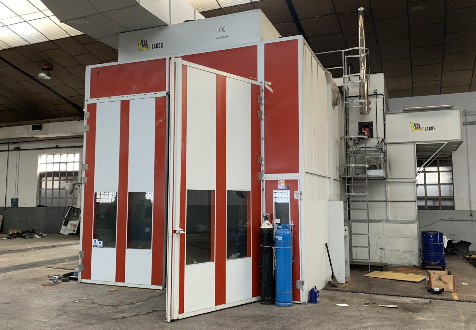 Cabina de pintura marca Lagos modelo EUROPA de 6,30x4,00x2,70 altura de puerta, año 1998 motor impulsión 5,5cv con doble turbina quemador de gasoil revisado con obra civil o extracción semivertical para no hacer obra civil.