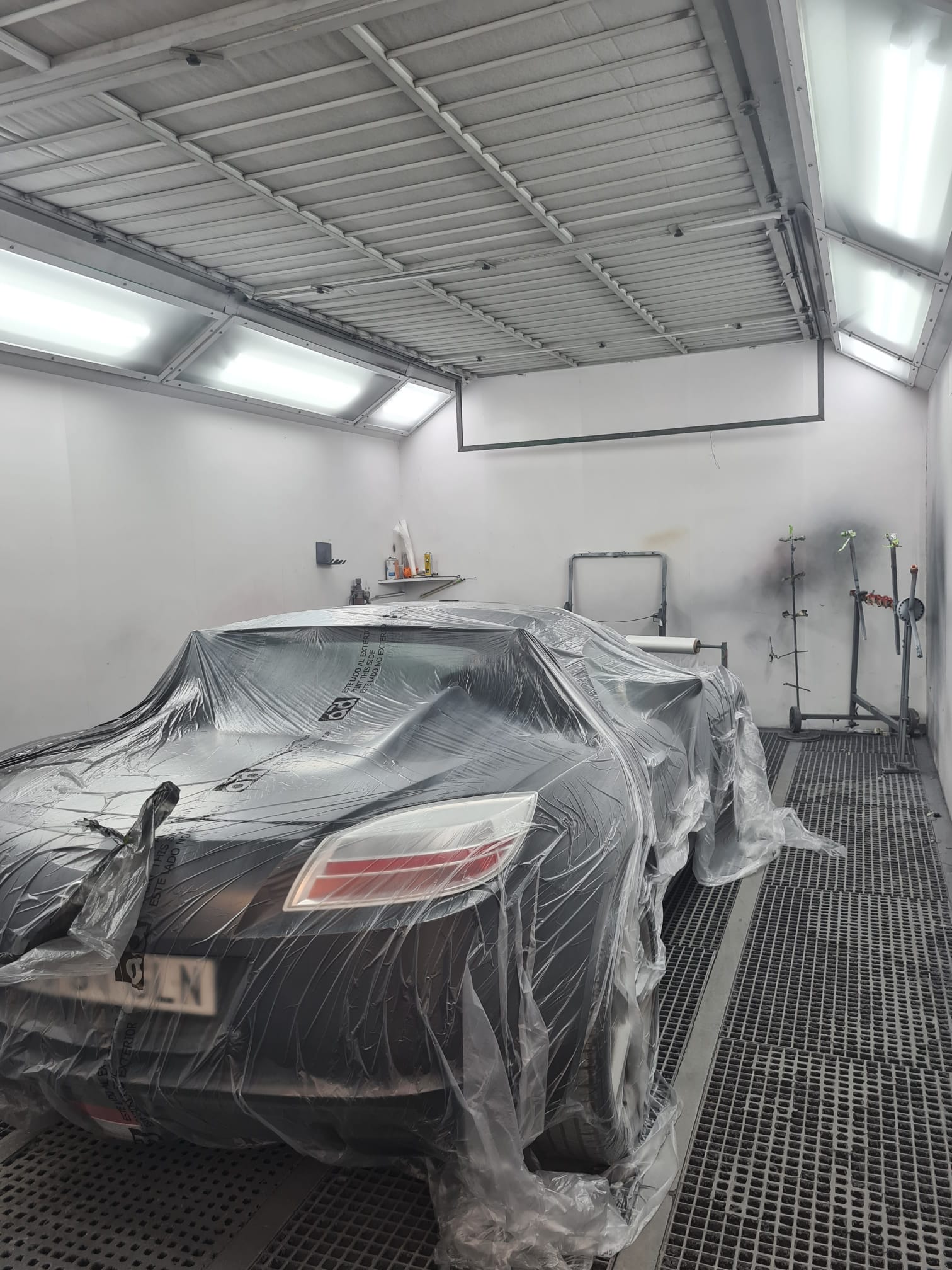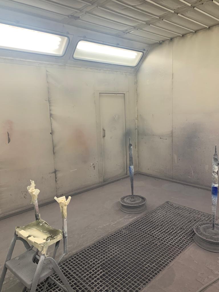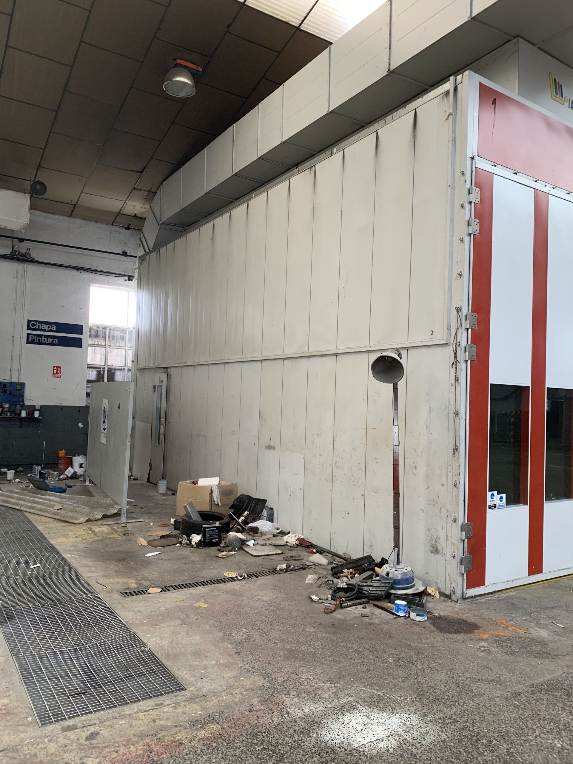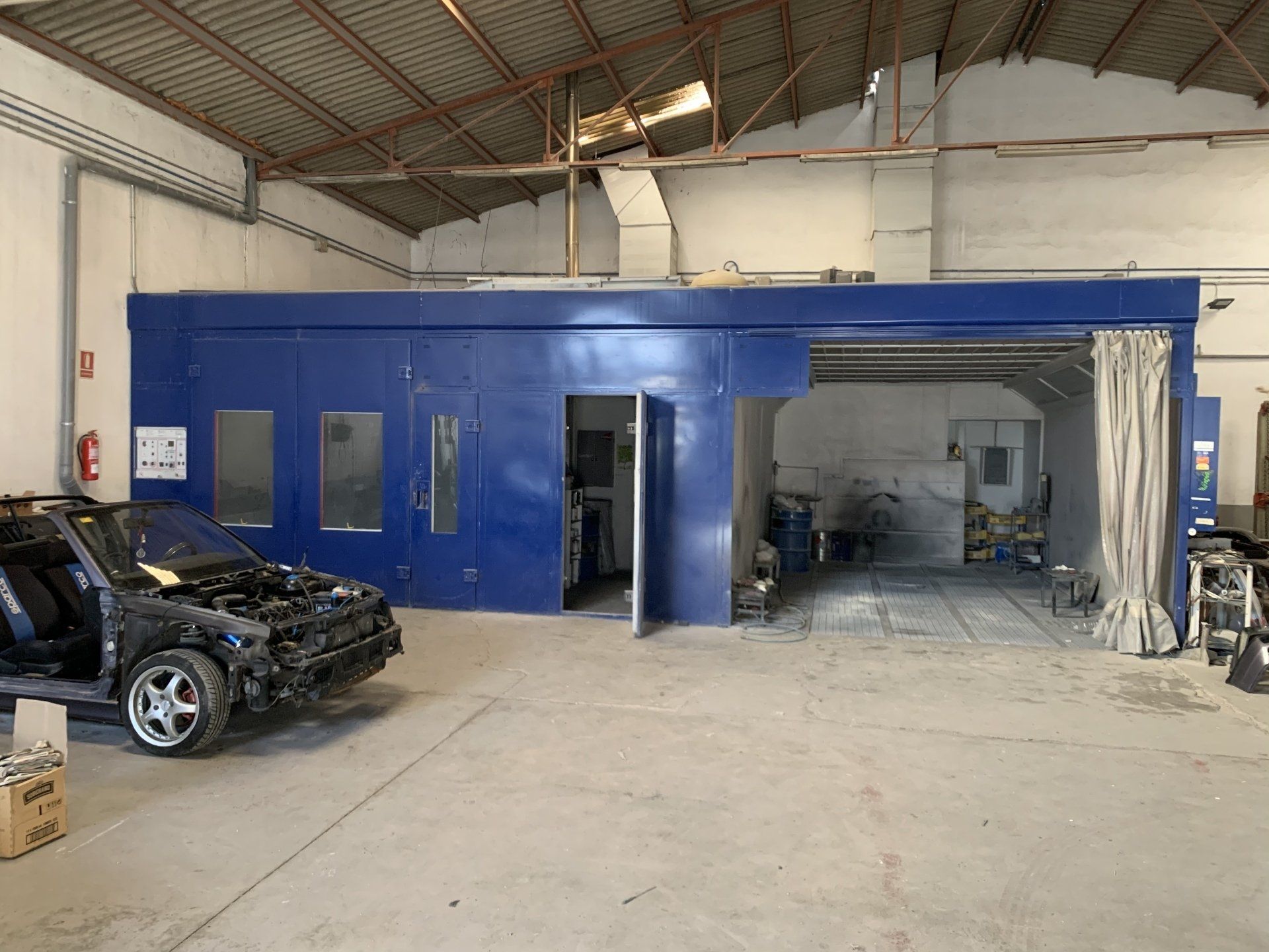 Cabina de pintura marca CABICAL modelo seco de 10,00x4,00x2,50 altura interior 2 motora de extracción y motor de impulsióncon quemador de gasoil revisado. Puerta de entrada de 2,40x2,00 y puerta de acceso peatonal.