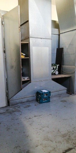 Zona de lijado industrial marca LAGOS modelo AP 6/1 9,20x5,00 año 2003 motor de extracción de 10cv. de 35.000m3/h.