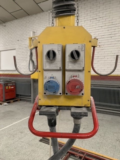 Cabina de pintura marca USI modelo CF70.40.28 de 7,00x4,00x2,80 altura de puerta, año 1998 motor impulsión 10cv motor extracción 10cv con quemador de gas o gasoil revisado con basamento metálico rampa exterior.