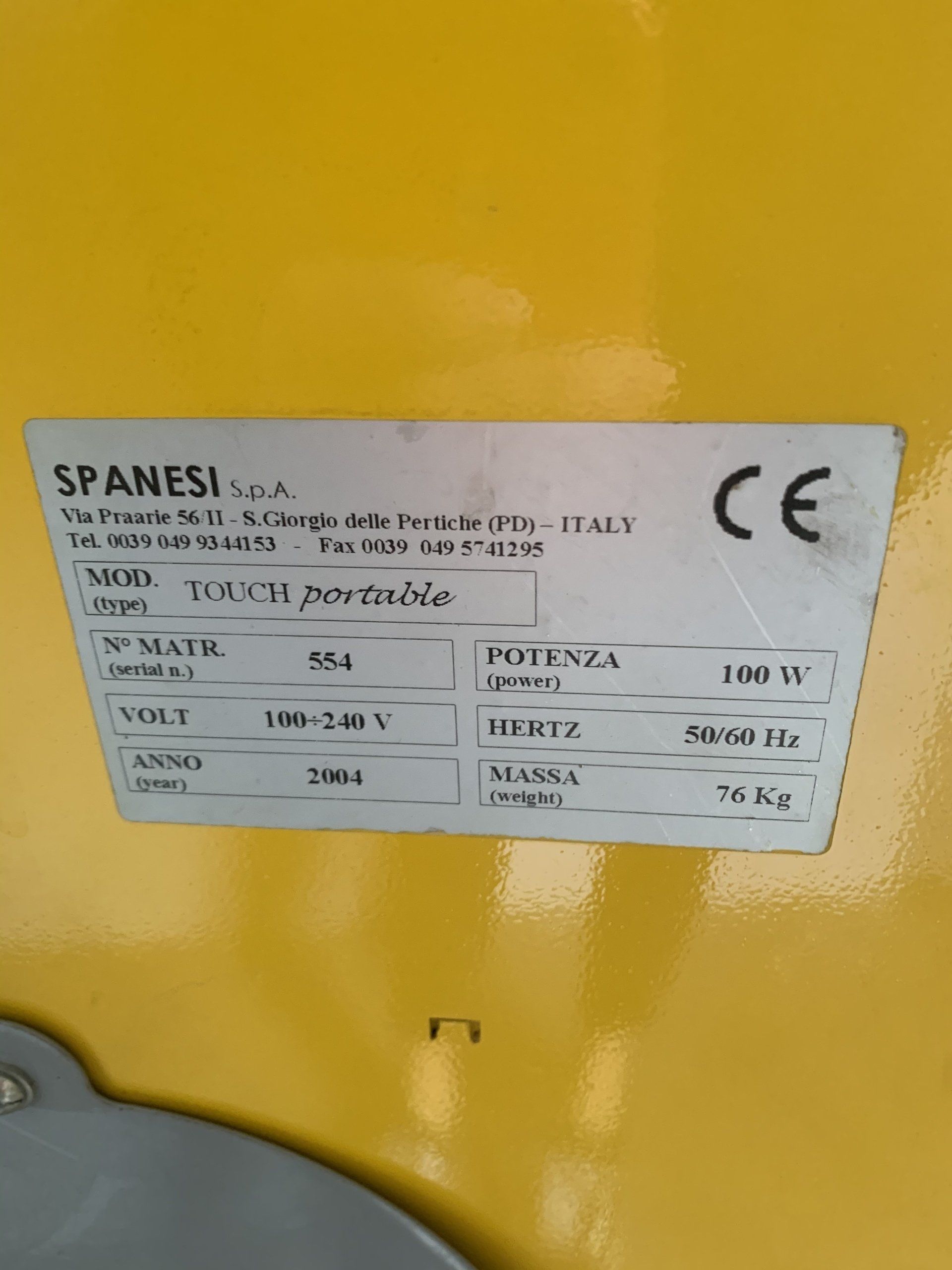 Sistema de medición electrónico TOUCH de la marca SPANESI año 2004, dirigido por ordenador portátil, permite realizar el control de cotas de los vehículos.