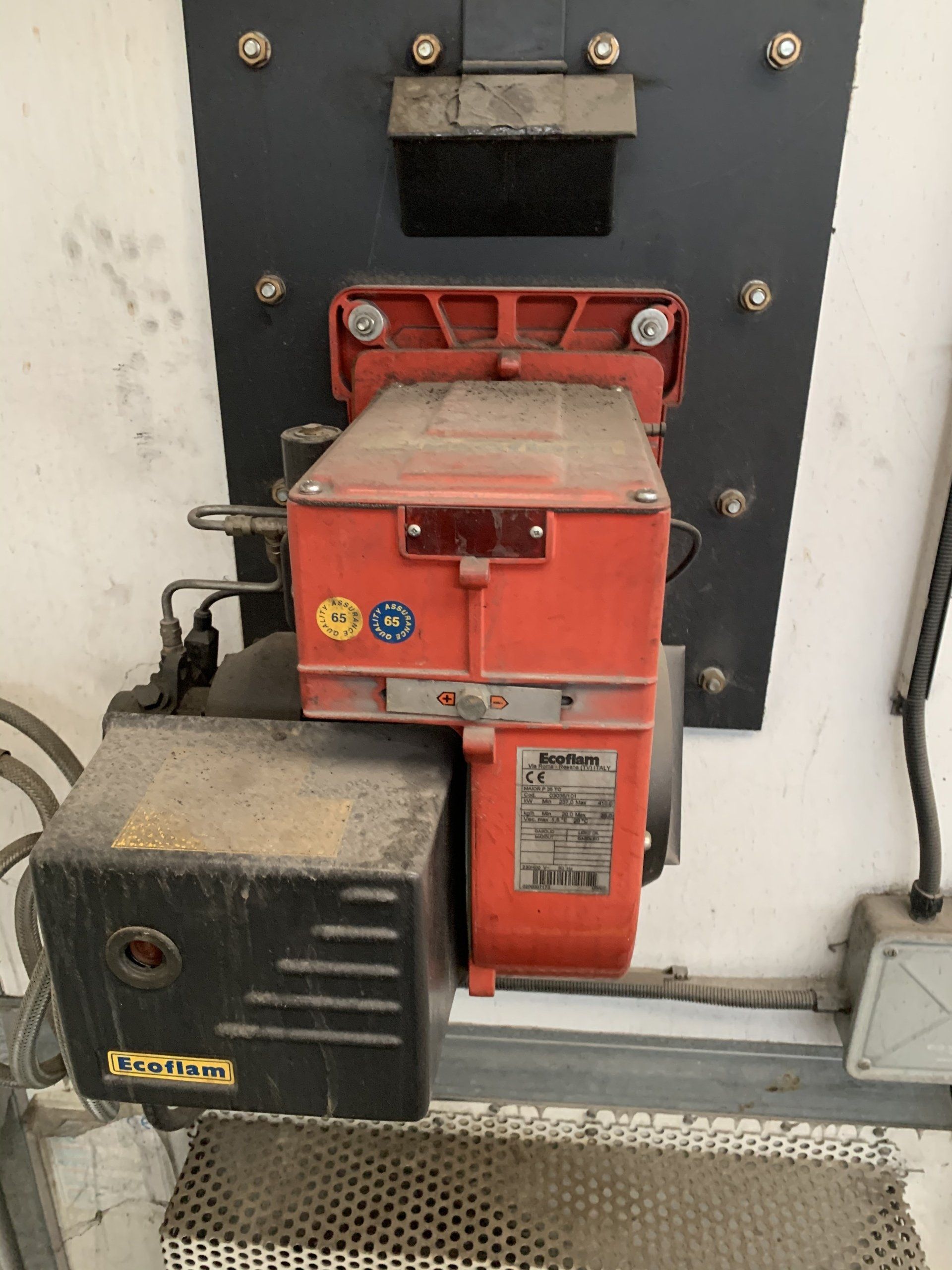 Cabina de pintura marca LAGOS modelo EUROPA MA15/15 de 7,30x4,00x2,80 altura de puerta, año 2001 motor impulsión de doble turbina con 7,5cv con quemador de gasoil ECOFLAM 120.000 Kcal/h revisado con basamento metálico empotrado.