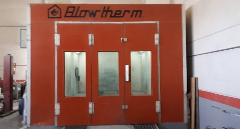 Cabina de pintura marca Lagos modelo EUROPA de 6,30x3,50x2,70 altura de puerta, año 1998 motor impulsión 5,5cv con doble turbina quemador de gasoil revisado con obra civil o extracción semivertical para no hacer obra civil.