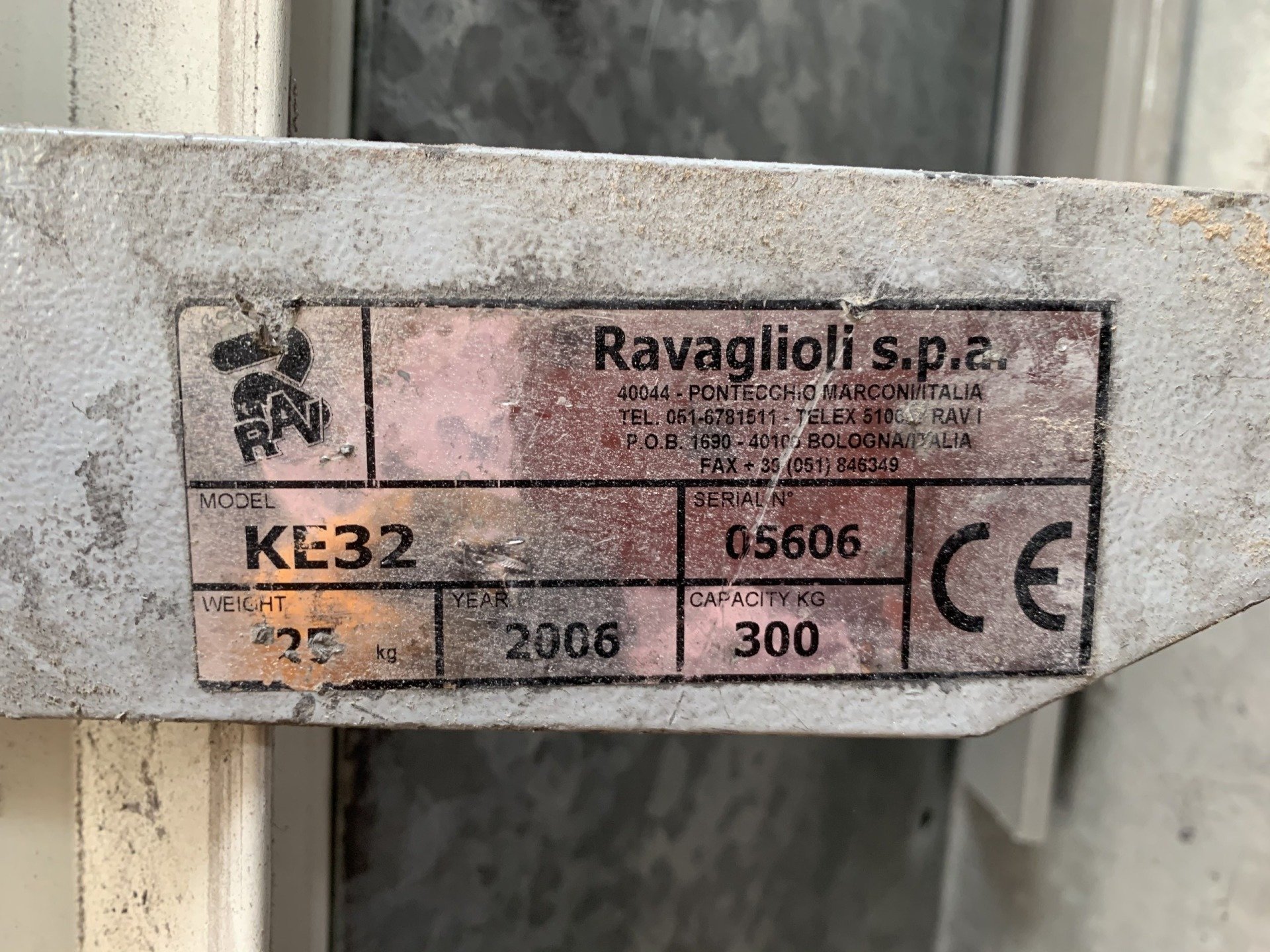 Elevador de 2 columnas marca RAVAGLIOLI tipo KPX336 tensión 230/400v. Año 2005 2700kg. con base AEREA. El precio no incluye montaje ni transporte